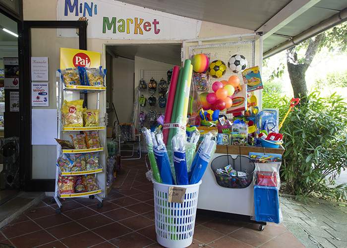 Il minimarket interno offre prodotti freschi a km 0, pane, verdure di stagione, piatti pronti tipici e articoli utili per la vacanza.