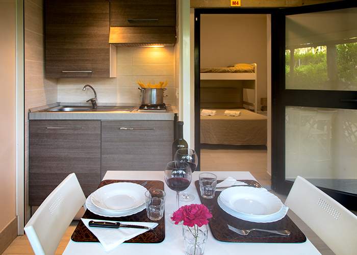 Bungalow e case mobili climatizzati, con bagno privato, veranda e spazi esterni
